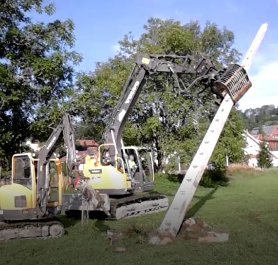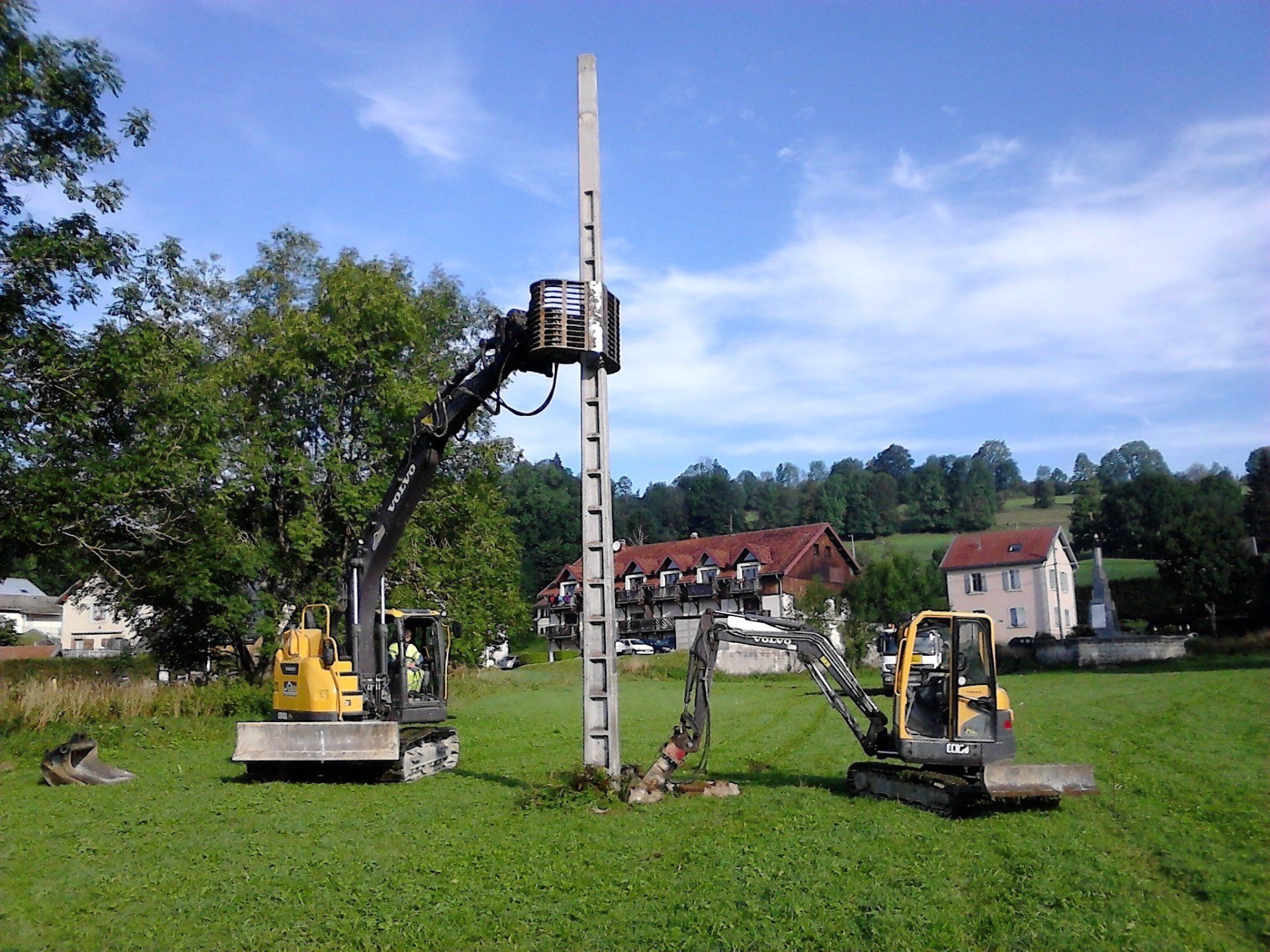 Une fois les réseaux enterré et tous les fils dépendus, nous pouvons attaqué la dépose des poteaux